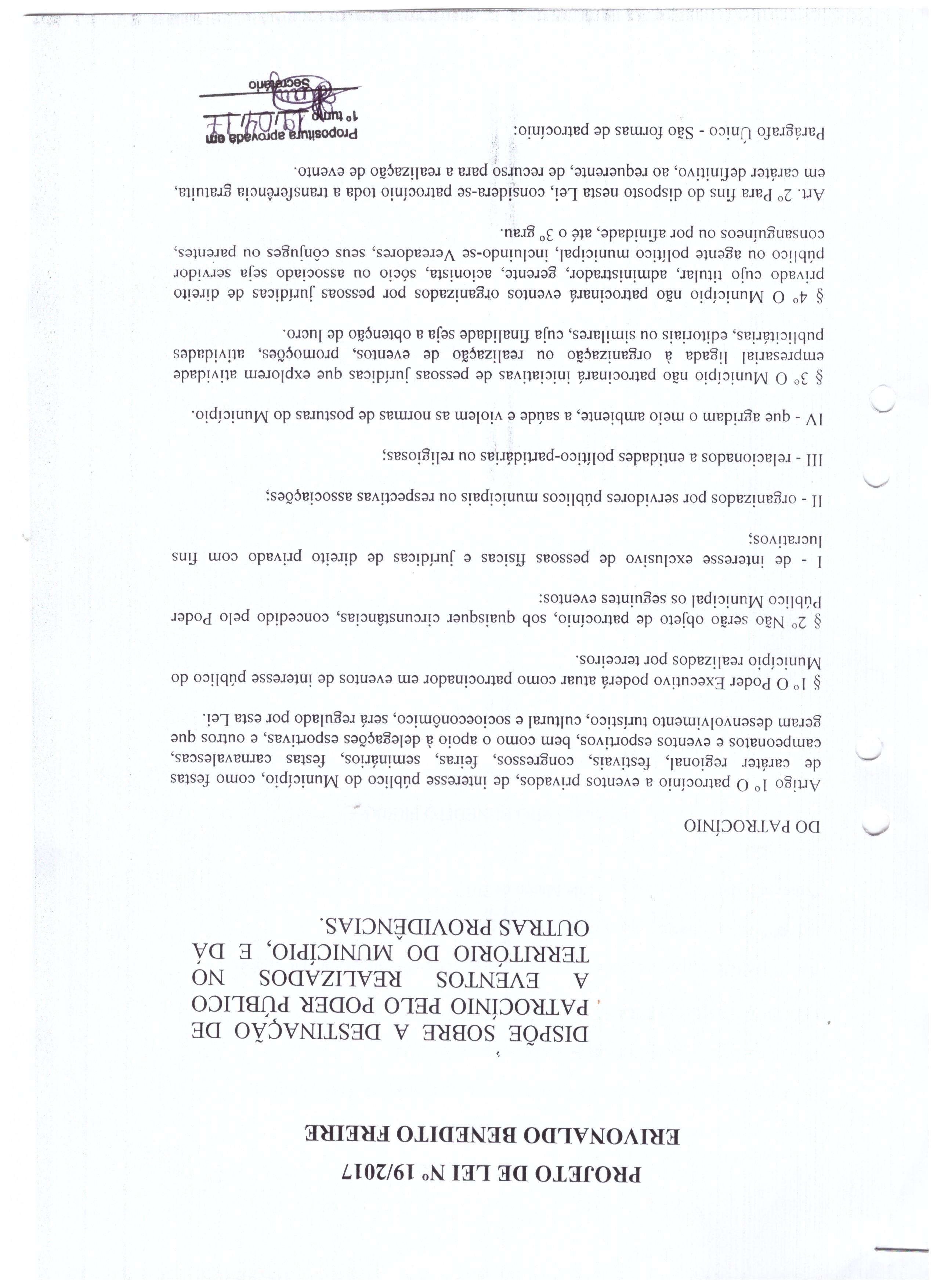 Projeto de Lei nº 19 - Autoria: Vereador Erivonaldo Freire
