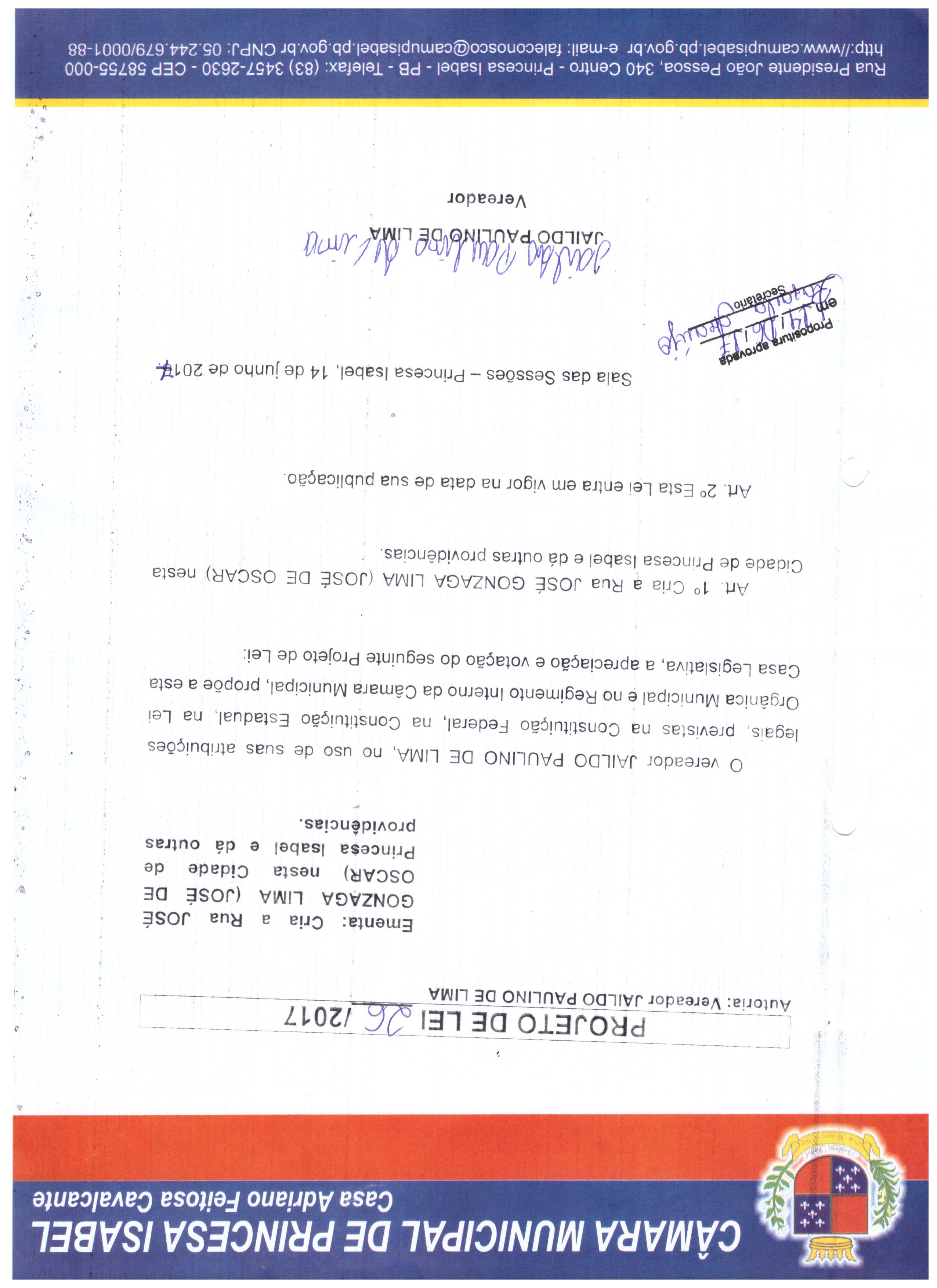 Projeto de Lei nº 26 - Autoria: Vereador Jaildo Paulino de Lima