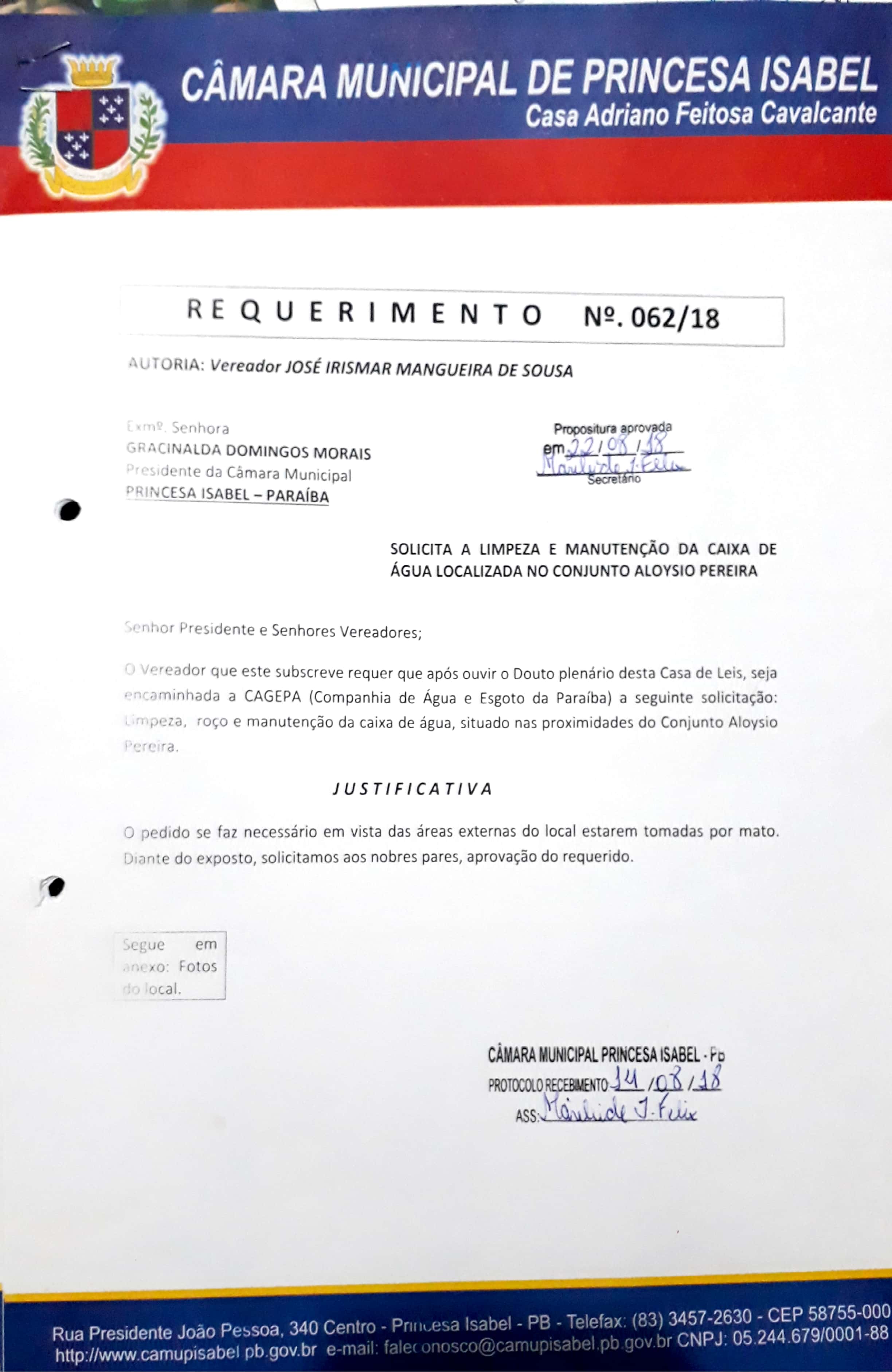Requerimento 062/2018