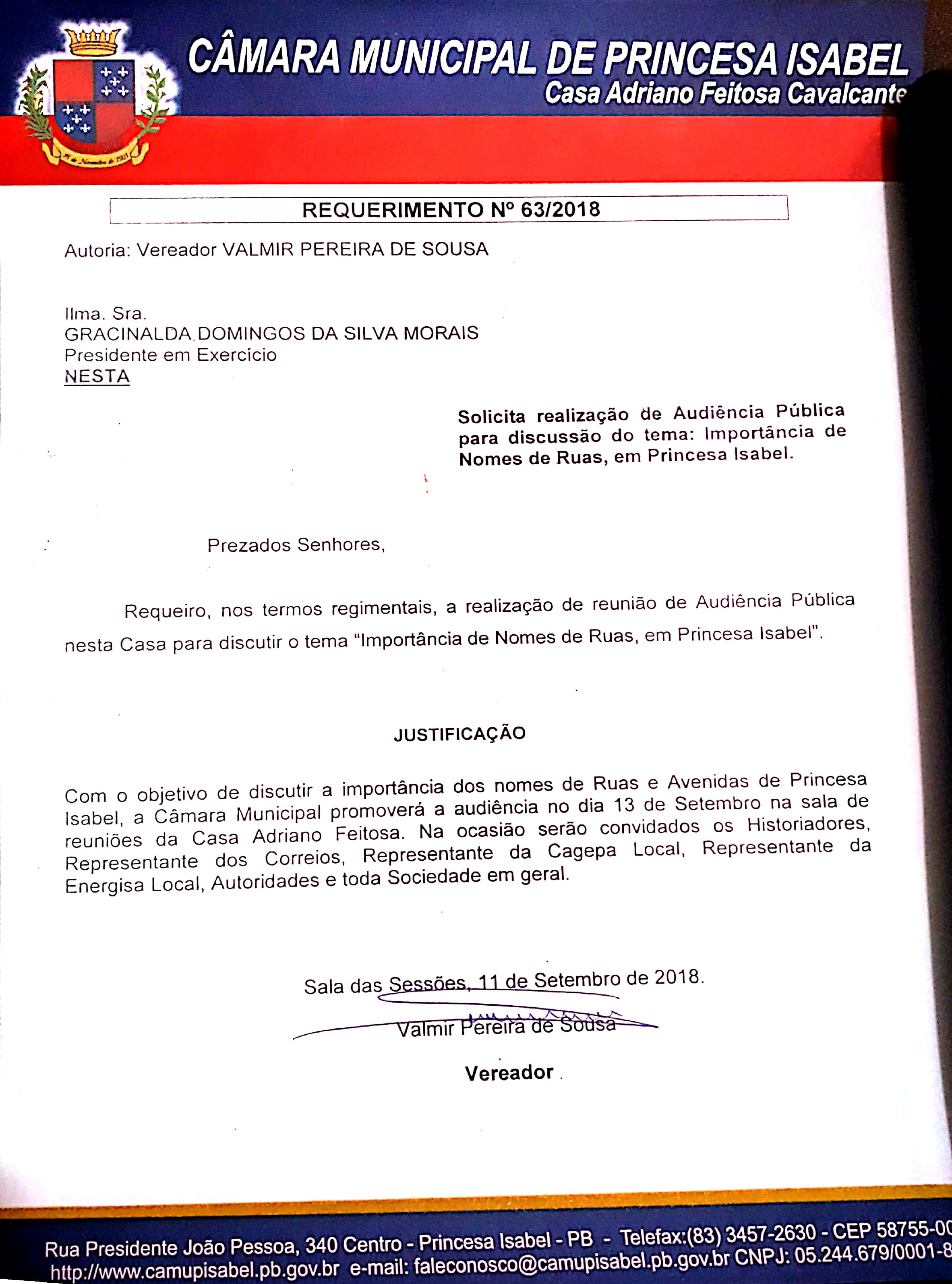 Requerimento 063/2018