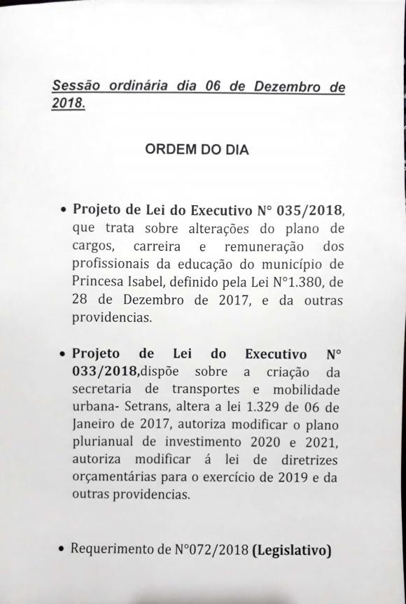 Sessão ordinária dia 06 de Dezembro de 2018.
